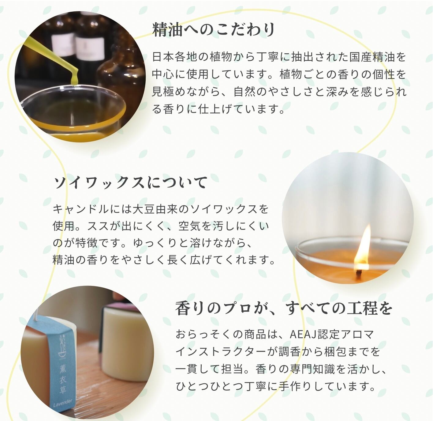 香料として、天然精油を使用しています。