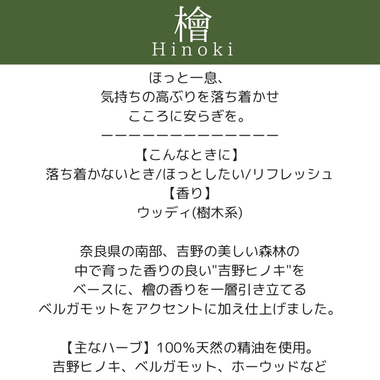 【吉野ヒノキ(国産)、ベルガモット、ホーウッドなど】