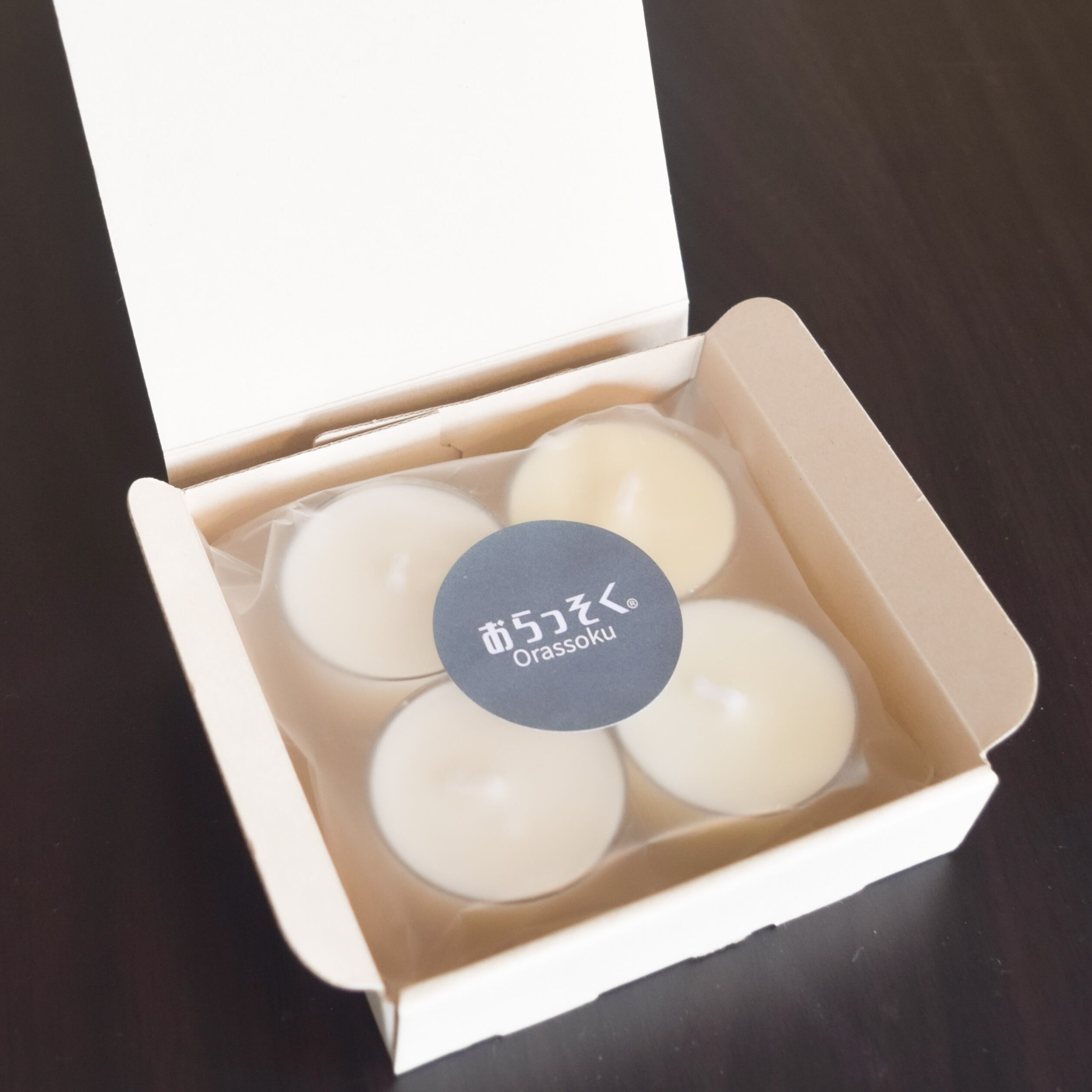 国産精油のやさしい香りを手軽に楽しめる、ティーライトタイプのアロマキャンドル4個入り。
